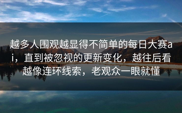 越多人围观越显得不简单的每日大赛ai,直到被忽视的更新变化,越往后看越像连环线索,老观众一眼就懂